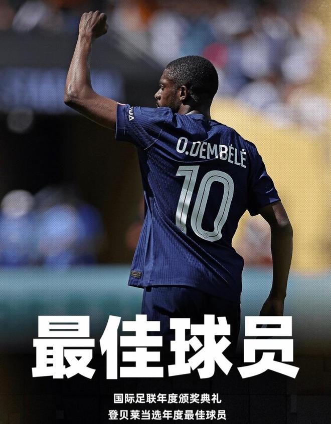 2025年12月17日 巴黎圣日耳曼前锋登贝莱当选2025年度FIFA最佳球员(世界足球先生)
