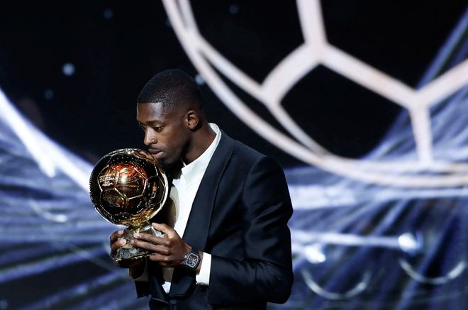 2025年12月17日 巴黎圣日耳曼前锋登贝莱当选2025年度FIFA最佳球员(世界足球先生)